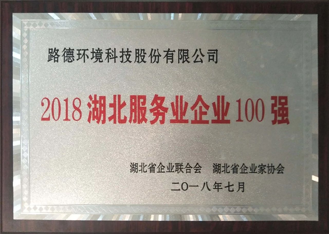 2018-08-07熱烈祝賀“路德環(huán)境科技股份有限公司”榮膺 2018 湖北服務(wù)業(yè)企業(yè)100強(qiáng)